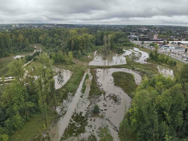 Bereits ab drei Uhr morgens war das Einsatzteam des Niersverbands aktiv vor Ort und koordinierte sich eng mit den örtlichen Behörden. „Die Zusammenarbeit mit den betroffenen Städten und Feuerwehren verlief reibungslos und effektiv“, betonte Christian Klump, Abteilungsleiter Gewässer beim Niersverband. Die Hochwasserrückhaltebecken des Niersverbands in Hochneukirch, Odenkirchen, Geneicken sowie der Nierssee in Mönchengladbach-Neuwerk waren vollständig ausgelastet und trugen maßgeblich dazu bei, die Hochwasserwelle abzufedern. Auch die naturnahe Umgestaltung der Niers im Bresgespark, die Anfang letzten Jahres abgeschlossen wurde, zeigte ihre volle Wirkung: Die neu geschaffenen natürlichen Rückhalteflächen waren komplett gefüllt und nahmen große Wassermengen auf. Insgesamt konnten mehrere hunderttausend Kubikmeter Wasser zurückgehalten werden – eine enorme Entlastung für die Niers.