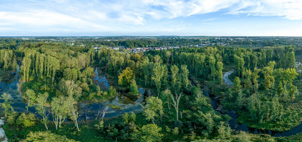 Abbildung: In diesem Jahr hat der Niersverband im Bresgespark eine der größten Gewässermaßnahmen in NRW umgesetzt. Das Bild zeigt einen Teil des insgesamt 3,7 km neu gestalteten Nierslaufs. (Foto: Niersverband © Martin Hochbruck)